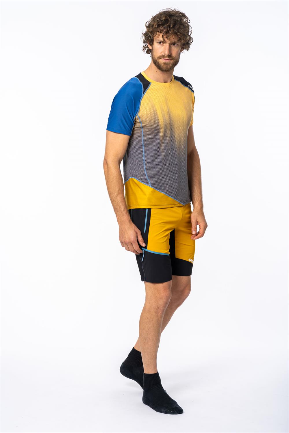 The most technical t-shirt in the collection, this year it features a completely revamped look, thanks to the new asymmetrical and innovative lines. It is designed for intense activity even in high mountains thanks to details such as differentiated texture fabrics or the laser-cut mesh band in the center of the back to promote breathability when wearing a backpack.
