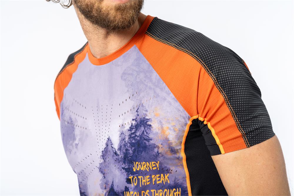 The micro-perforated mapping on the chest further enhances freshness and breathability. The bottom hem is laser-cut and glued for a precise finish, while the neckline trim is in contrasting color.
