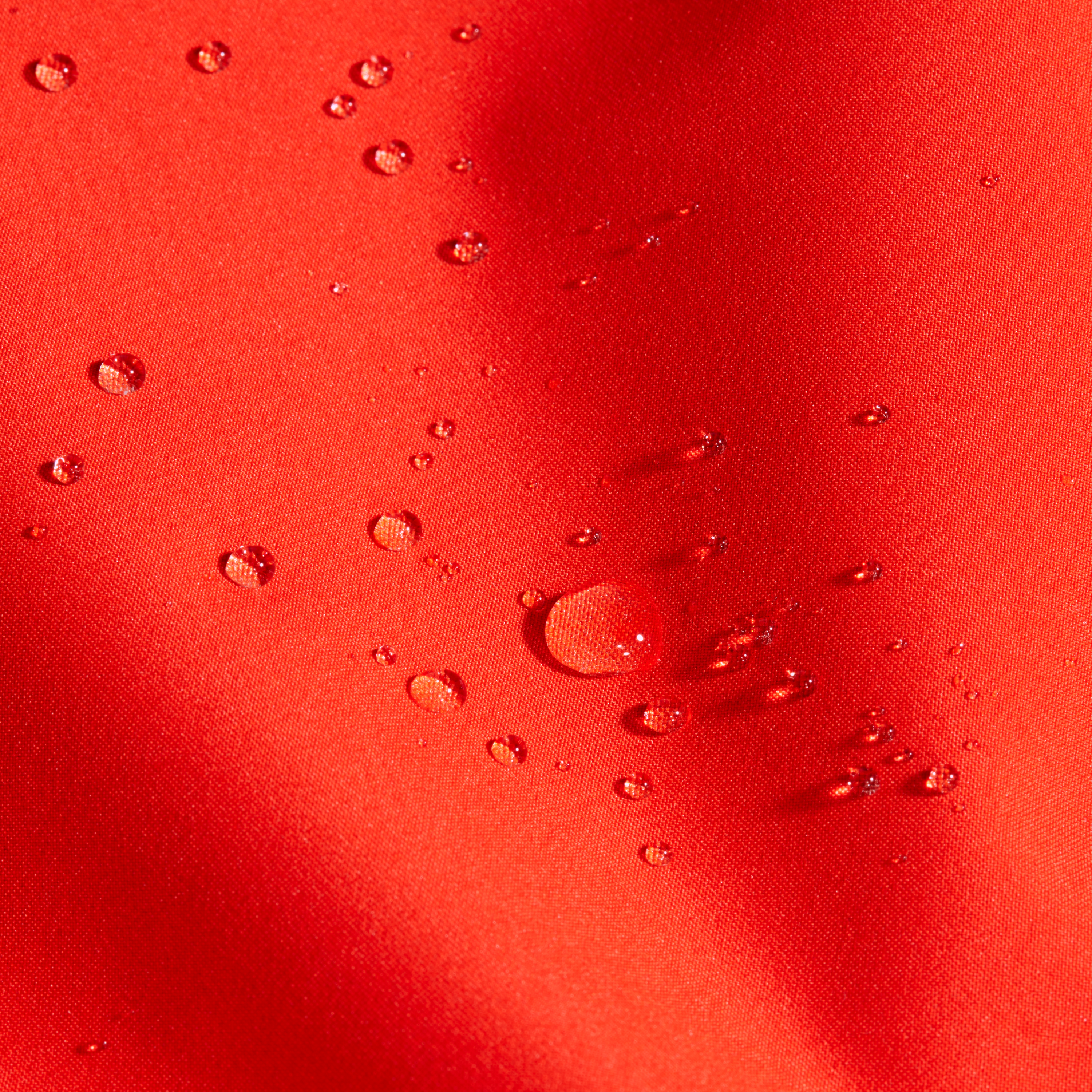 The jacket is made with a 2-layer Mammut DRY Tour laminate that provides dependable weather protection. The fabric is windproof, while the 10,000 mm water column and 10,000 g/m²/24h breathability rating create a good balance between protection and wearing comfort. The additional PFC-free DWR treatment helps the outer fabric repel moisture more effectively.